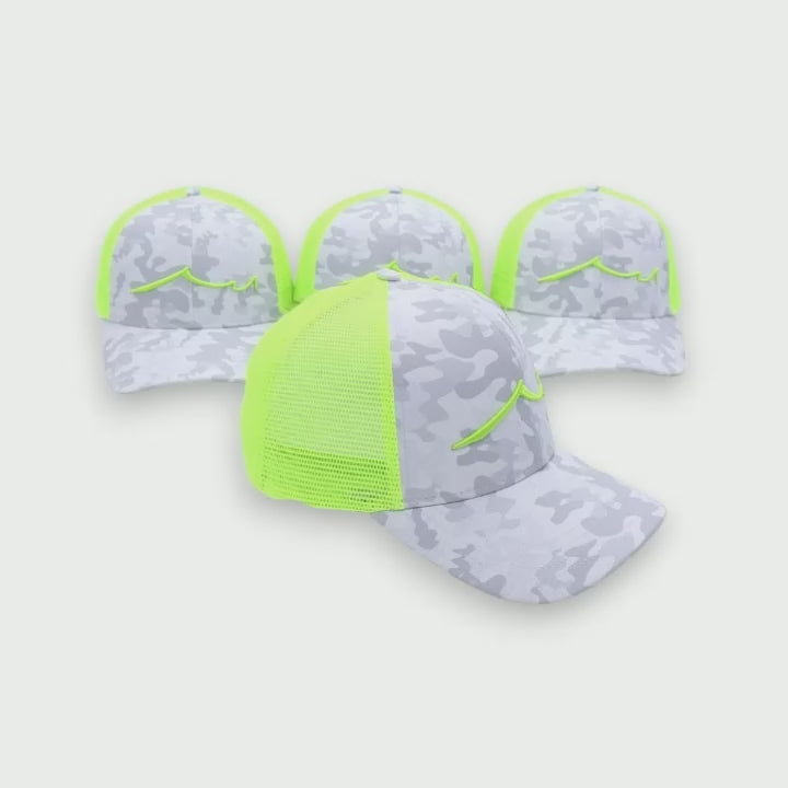Where is the guide? Right there! Say hello to our guide cap in light camo and Searun chartreuse! Must be the new cap of luck.