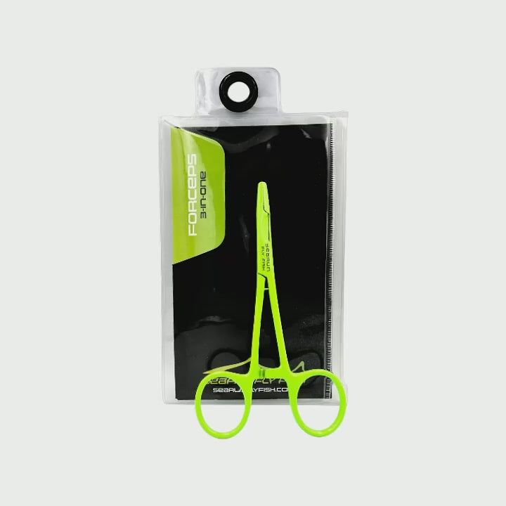 Highly versatile 13 cm forceps with flat mouth and teeth, for easy use when removing barbs or getting good grip when unhooking a fish. The forceps has a sharp scissor for cutting line and needle for cleaning hook eyes.