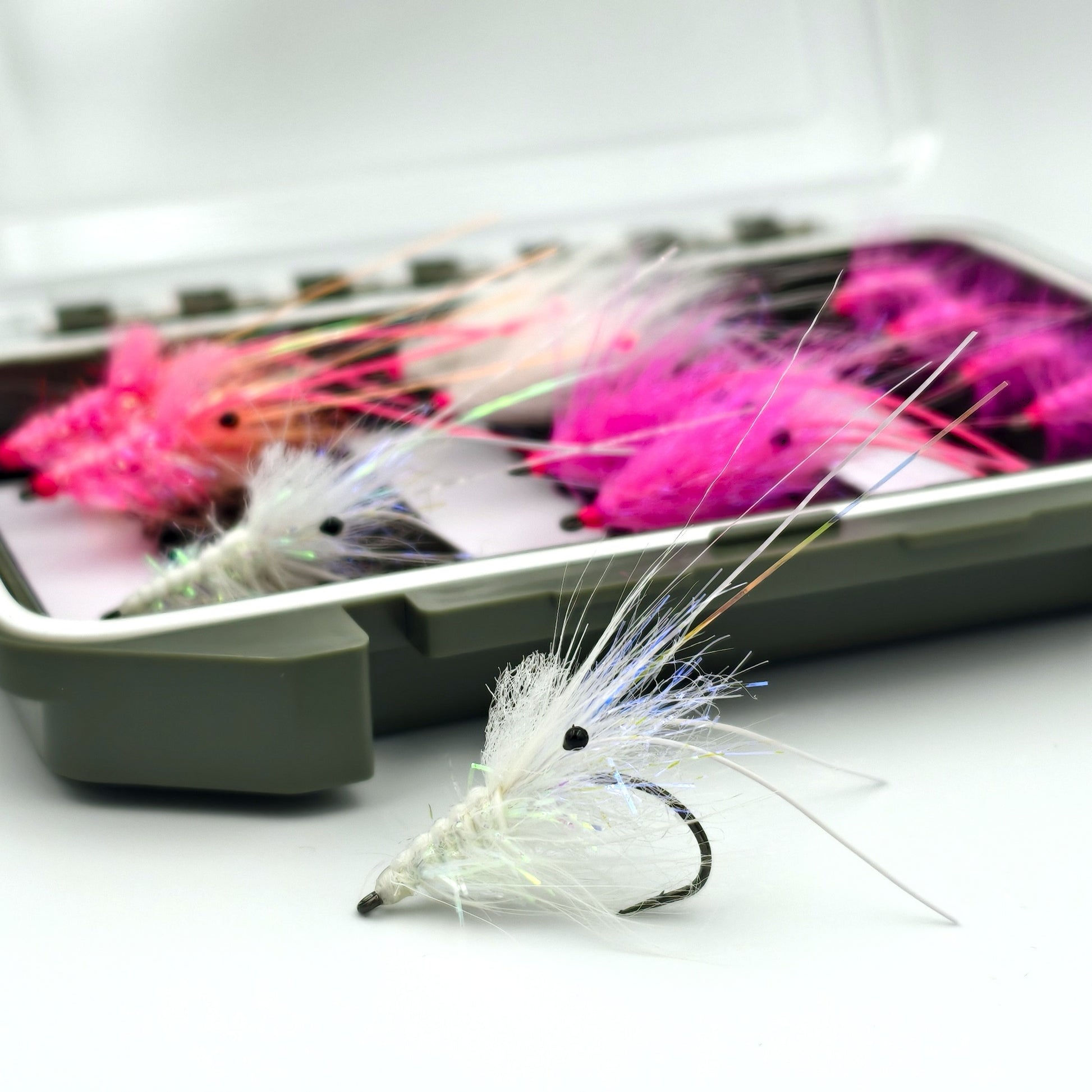 Inside, you’ll find a limited-edition pearl-white Glimmertyven, included exclusively in this box. The set comes with our waterproof fly box and 12 exceptional winter flies.